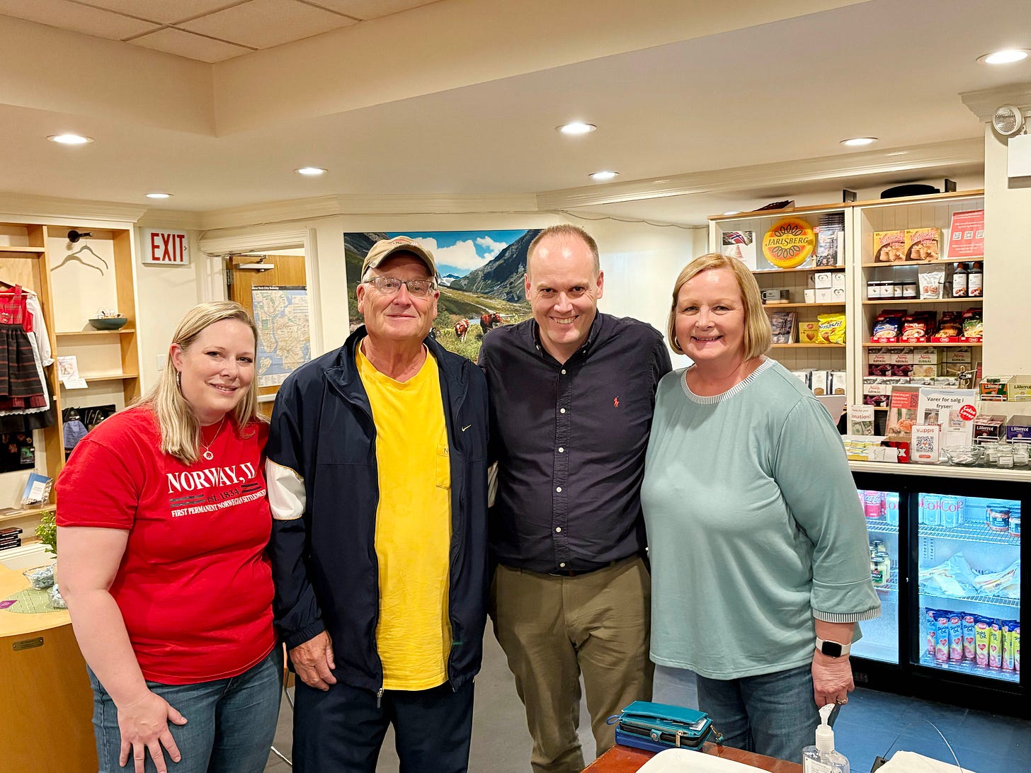 The day also brought together old friends of Norway in other ways. Dave Johnson from the Norsk Museum was there, as was Hank, whose roots go back to Sandnes — he finally met Sandnes Mayor Kenny Rettore on the pier. Reba, a devoted friend of Norway, radiated joy through the crowd.