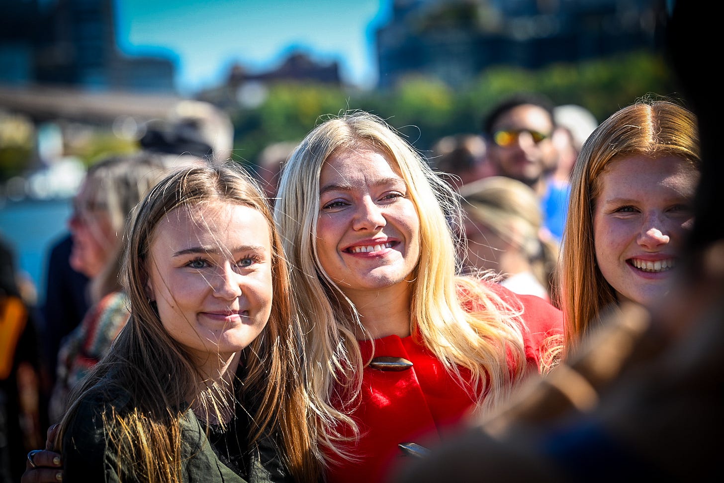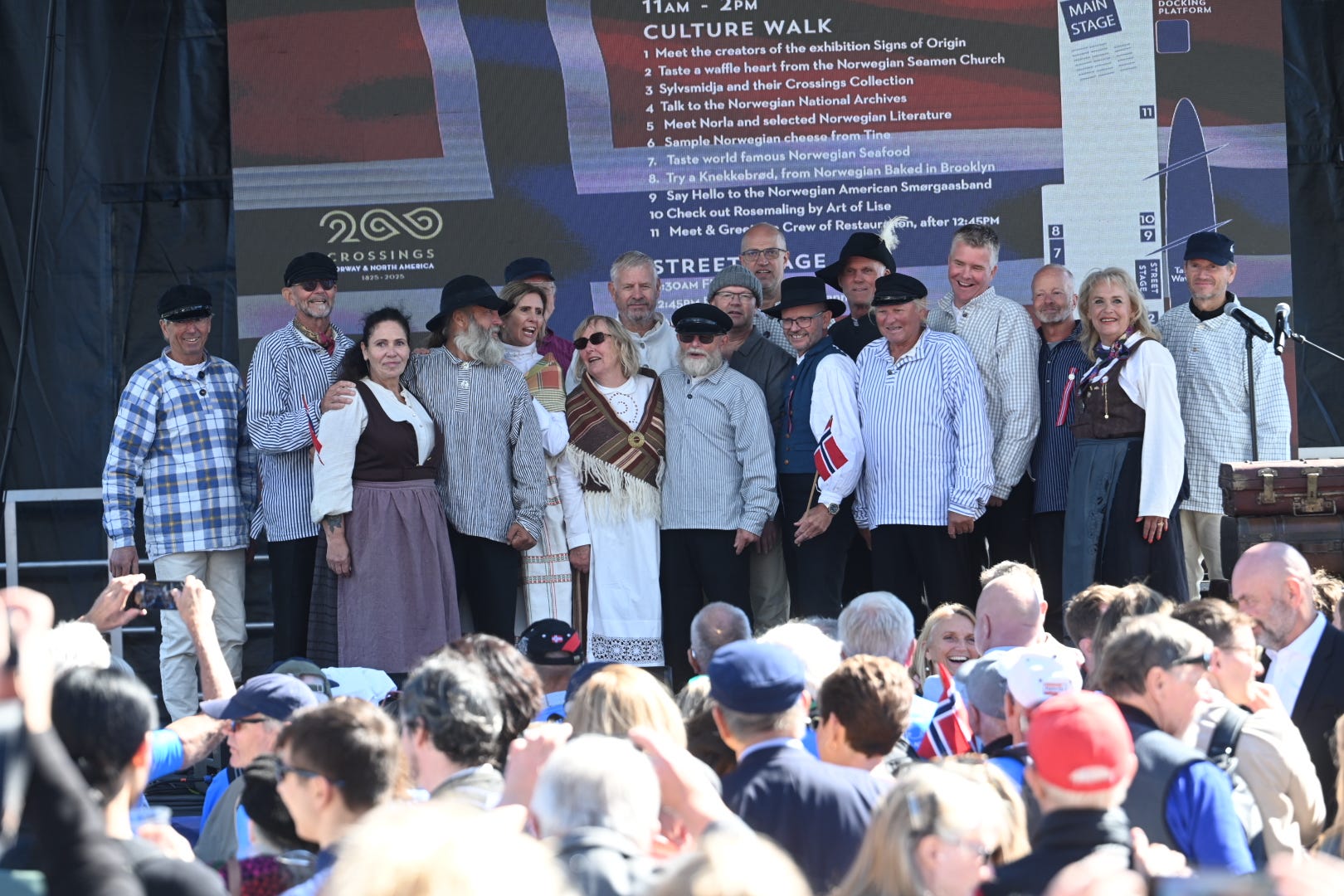 The crowd waiting on the pier is unlike any other in the city that day: Thousands of Norwegians, Norwegian-Americans, and curious New Yorkers. There are bunads, knitted sweaters, Norwegian national-team jackets, and small children holding flags.